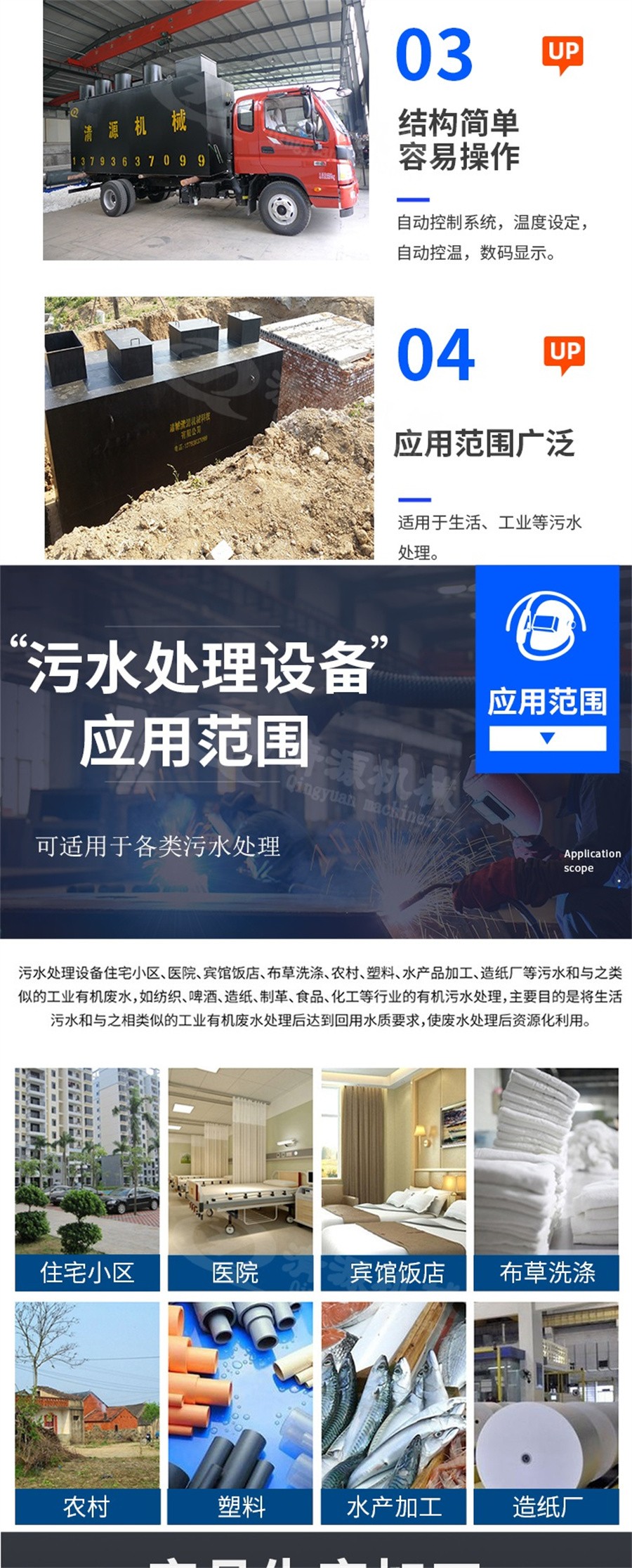 能夠處理生活系統(tǒng)綜合性廢水及其相類似的有機(jī)污水;采用玻璃鋼、不銹鋼結(jié)構(gòu),具有耐腐蝕、抗老化等優(yōu)良特性,使用壽命長達(dá) 50 年以上 全套裝置施工簡單、操作容易,所有機(jī)械設(shè)備均為自動(dòng)化控制,全部裝置可設(shè)置于地表以下,占地面積小。