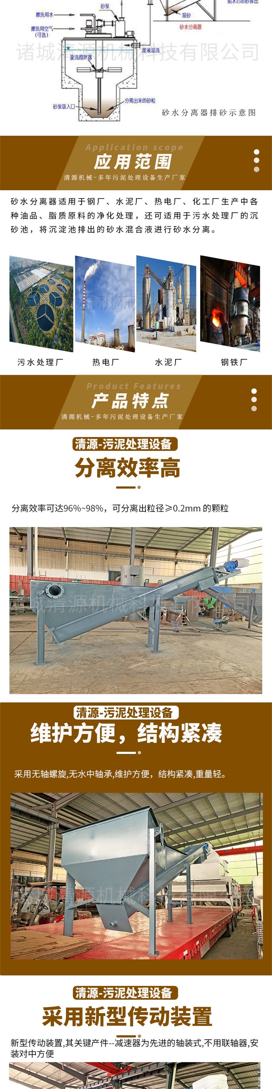用于將城市污水處理或工業(yè)廢水處理中的沉砂池排出的砂水混合液進行砂水分離。