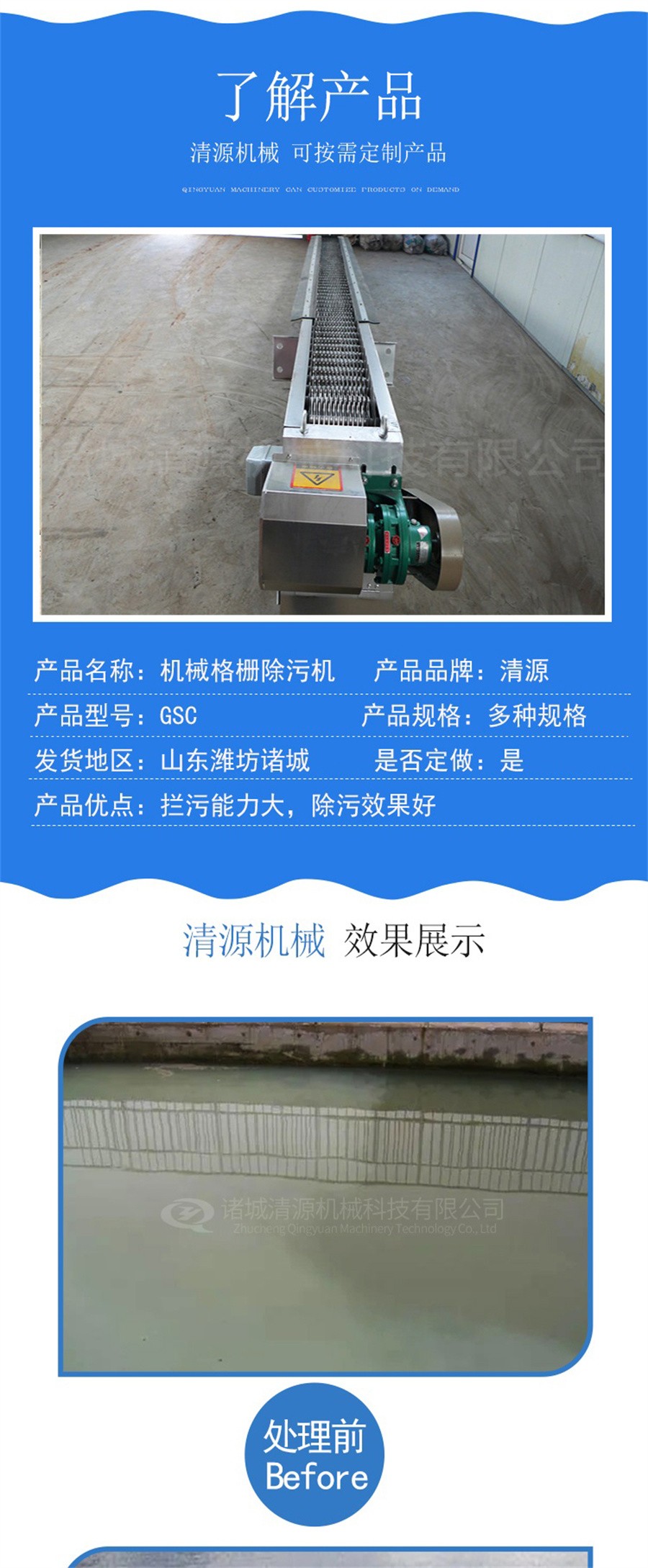 我公司除生產(chǎn)機(jī)械格柵除污機(jī)外還生產(chǎn)格柵除污機(jī),鐘式旋流除砂機(jī),螺旋壓榨輸送機(jī),洗砂污水處理設(shè)備等其他環(huán)保設(shè)備。