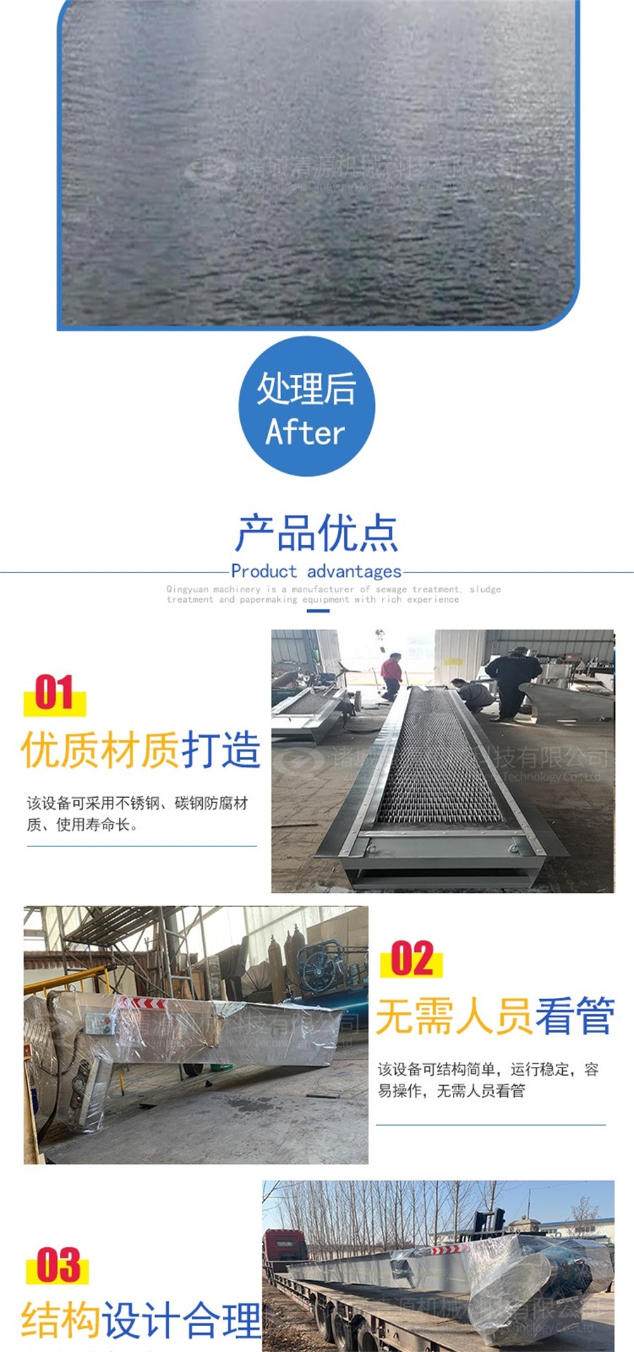 三、應(yīng)用范圍:機(jī)械格柵除污機(jī)廣泛應(yīng)用于給水、排水的二道格柵及無(wú)粗大漂浮物的取水構(gòu)筑物進(jìn)水口; 也可用在造紙、紡織、皮革、釀酒、榨糖、水產(chǎn)等工業(yè)廢水及市政污水。