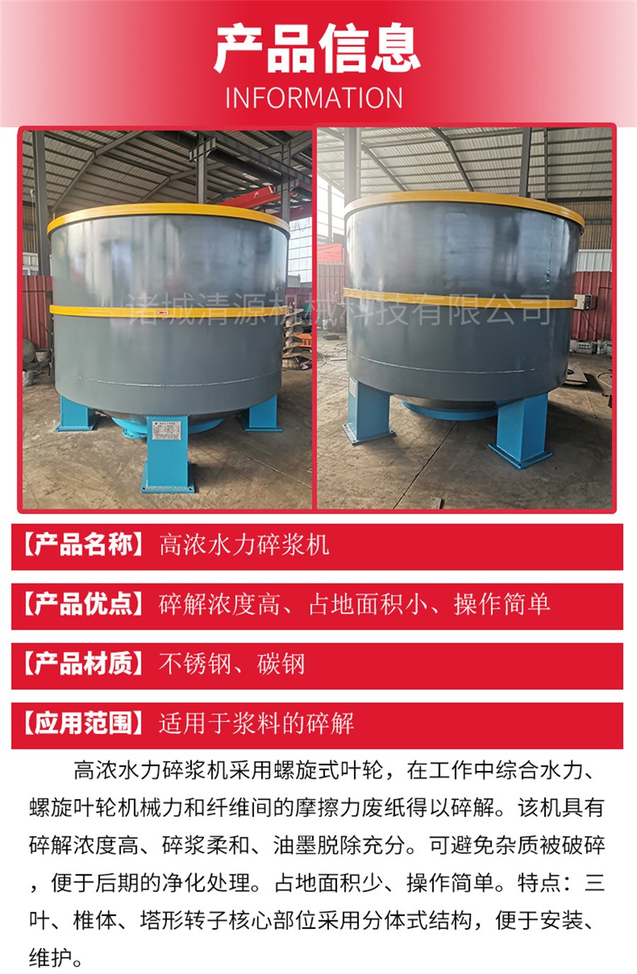 此外我公司不僅生產(chǎn)高濃水力碎漿機(jī),還生產(chǎn)水力碎漿機(jī)、地埋式污水處理設(shè)備、氣浮機(jī)、污泥壓濾機(jī)等其他設(shè)備。