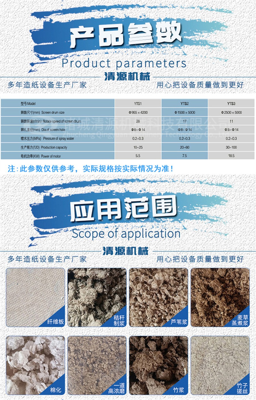 YTS系列圓筒篩用于廢紙制漿生產(chǎn)流程水力碎漿機之后,對碎解的廢紙進行粗選,除去較大雜物,以減輕后續(xù)篩選設(shè)備的負擔(dān)。新型圓筒篩具有生產(chǎn)能力大、篩選效果好、結(jié)構(gòu)簡單、維修方便等優(yōu)點。