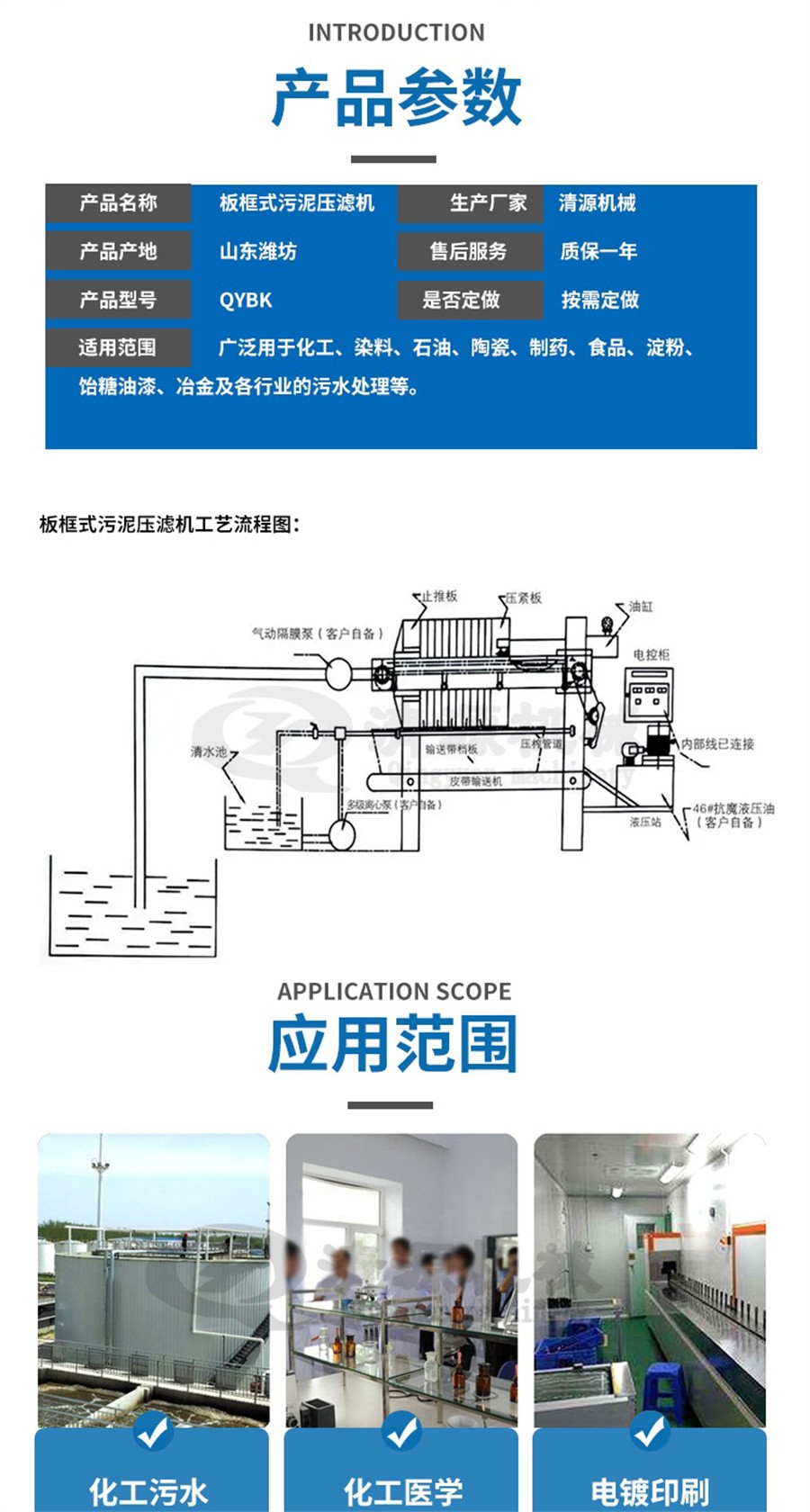 污泥變資源,污水變清泉,取代了廂式壓濾機 當入料結束,可將高壓流體介質注入隔膜板中,這時整張隔
