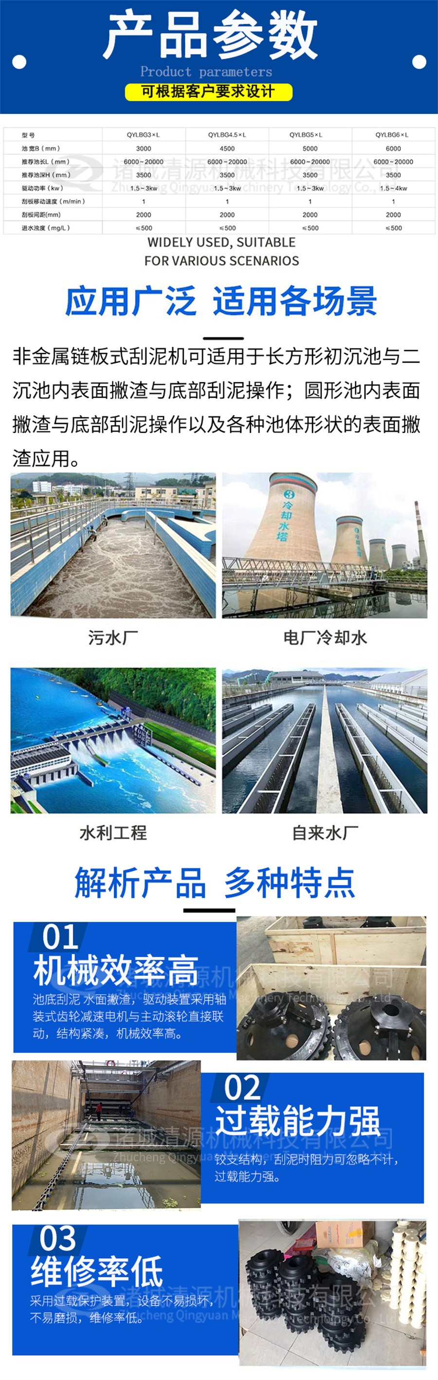 非金屬鏈條式刮泥機(jī)的適用范圍: