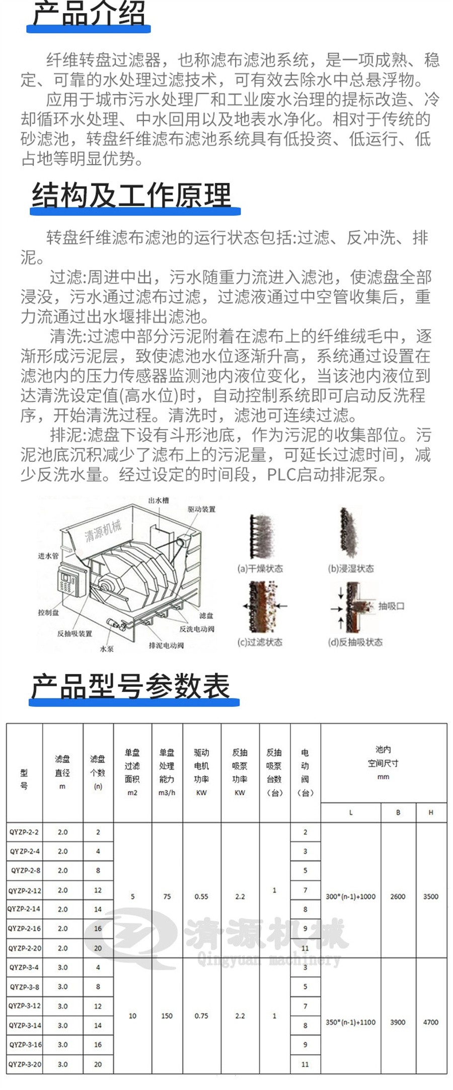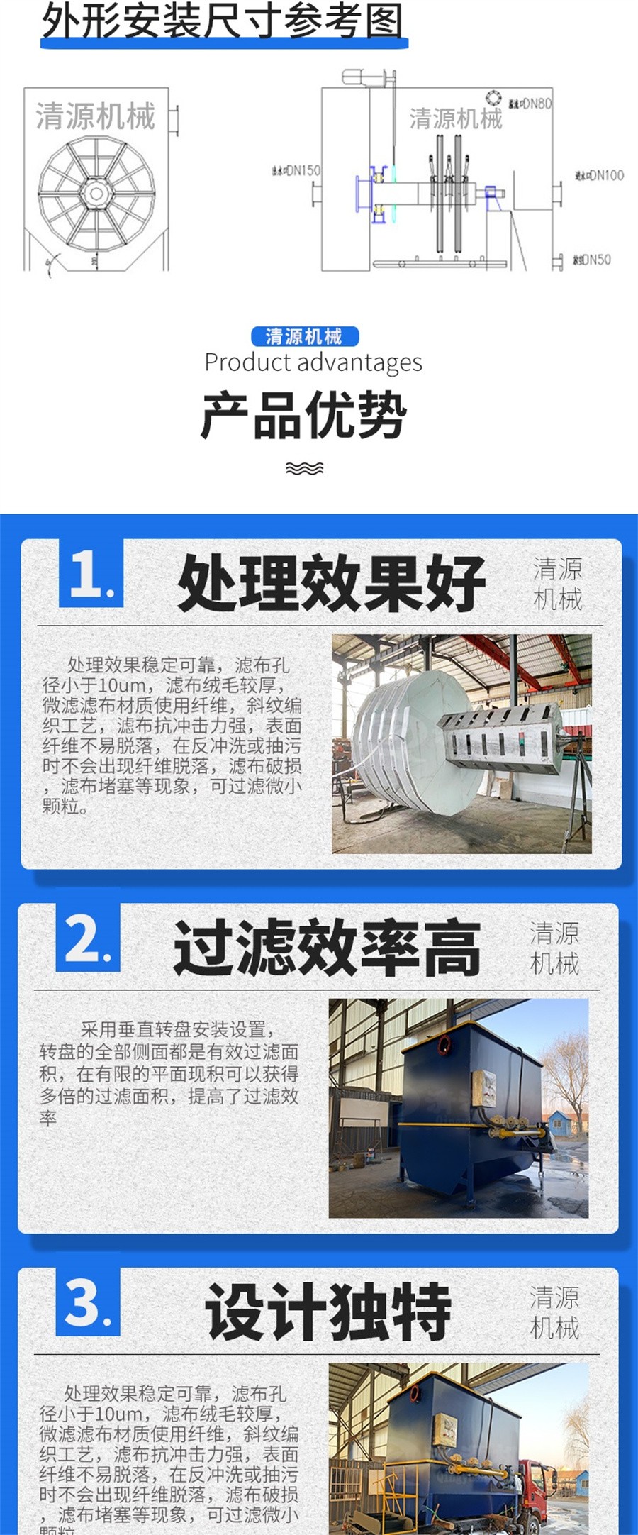 諸城清源機(jī)械科技有限公司纖維轉(zhuǎn)盤過濾器特點: