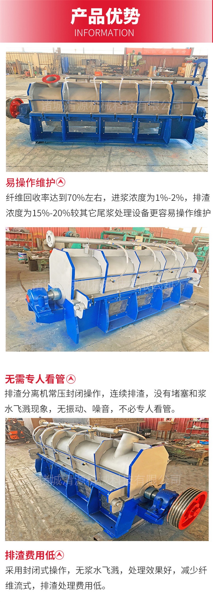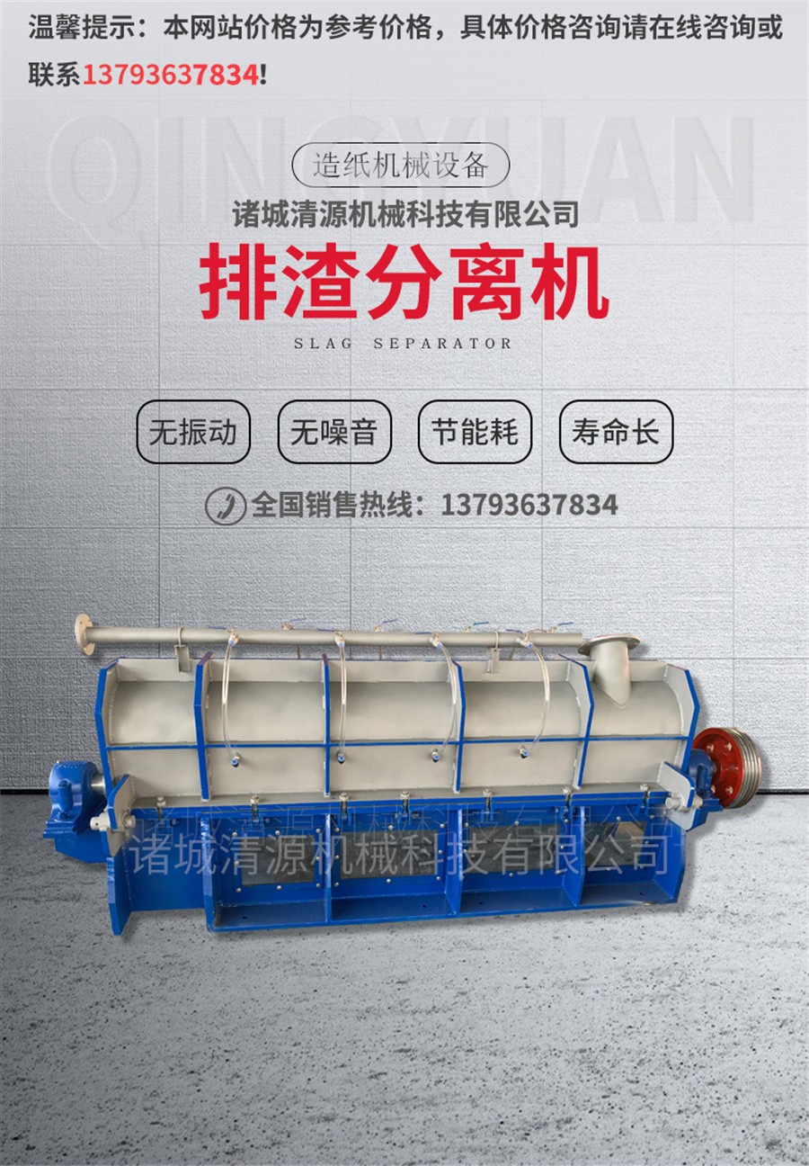 諸城清源機械生產(chǎn)的排渣分離機轉(zhuǎn)子是帶葉片的長圓柱體結(jié)構(gòu),葉片靠近設(shè)備主體,轉(zhuǎn)子上葉片的角度是預(yù)設(shè)定的,為更優(yōu)化的角度。軸的設(shè)計可使傳動皮帶安裝在設(shè)備兩端中的任一端。由位于殼體兩側(cè)的兩端軸承座支撐轉(zhuǎn)子。殼體蓋子易于拆卸,易于檢修內(nèi)部元件,進(jìn)口管和皮帶輪不需拆下即可檢修轉(zhuǎn)子或篩板。蓋子上設(shè)有防止?jié){料軸向回流的擋板,由轉(zhuǎn)子推動漿料向前運動。良漿出口槽和排渣槽都是總體結(jié)構(gòu)的一部分,良漿槽是用來收集濾液的,它的設(shè)計增加了設(shè)備強度。排渣槽位于進(jìn)口末端對面的支腿上。帶孔的篩板是半圓柱形的,篩板上的通孔可因使用條件的不同而不同。篩板用螺栓固定在殼體上。