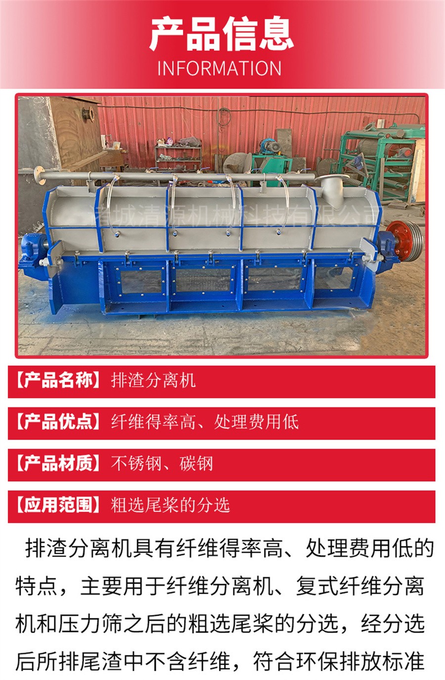 諸城清源機械生產(chǎn)的排渣分離機包括一焊接的組裝主體,主體支撐著篩板、轉(zhuǎn)子、收集槽、渣滓排放槽和支架,它是水平安裝的。