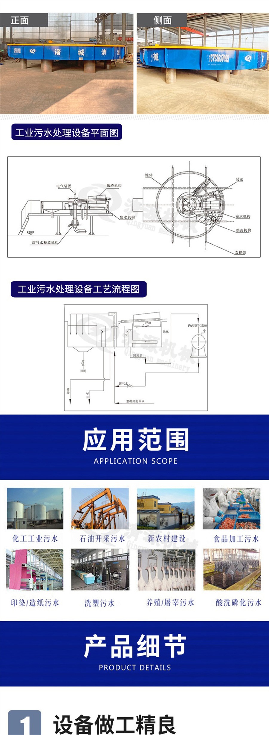 四、應用范圍:該設備以先進的設計,優(yōu)良的性能,廣泛應用于石油、化工、鋼鐵、制革、電力、紡織、食品、釀造、市政等行業(yè)的污水處理系統(tǒng),是傳統(tǒng)氣浮設備的替代產(chǎn)品。